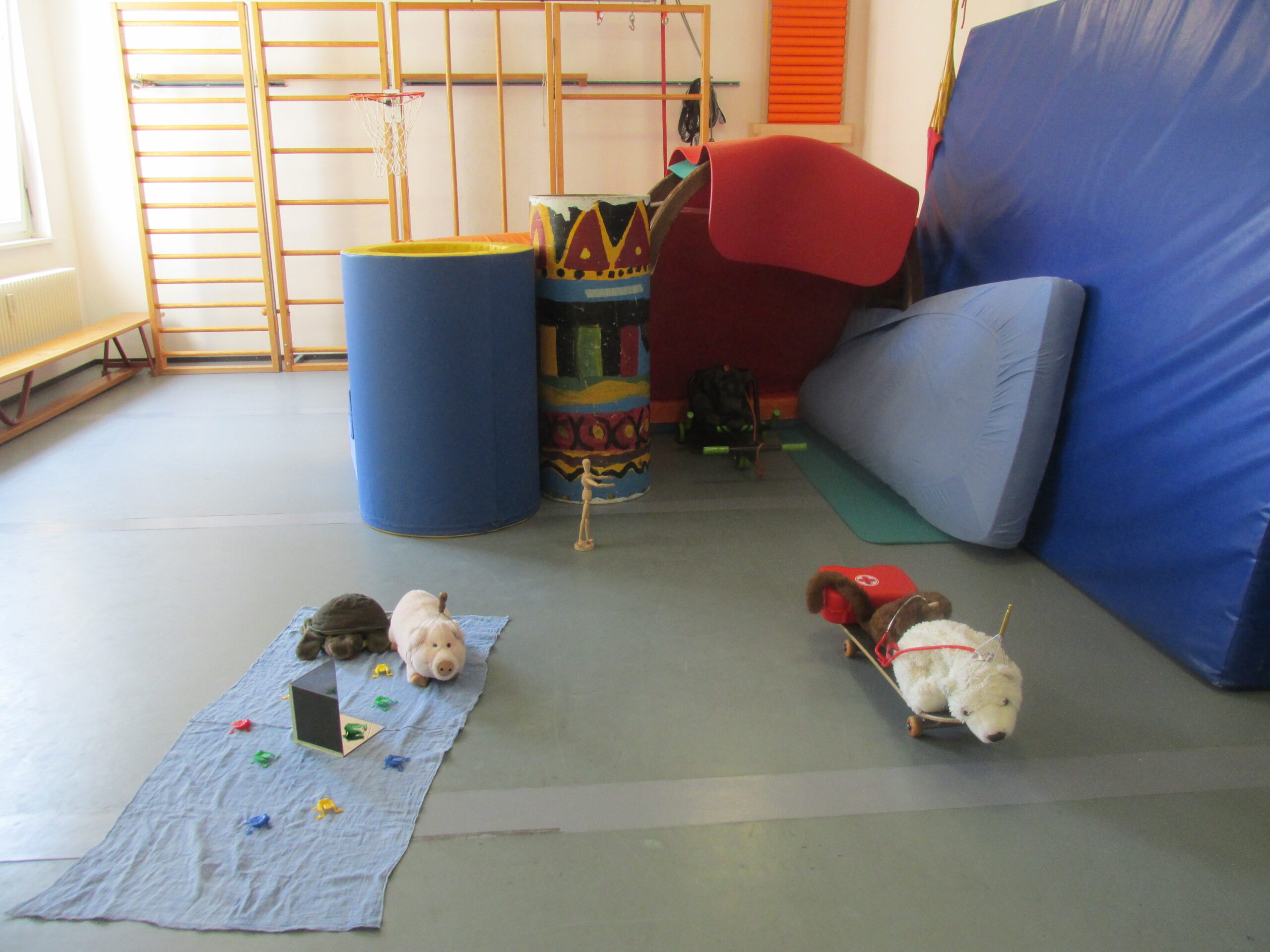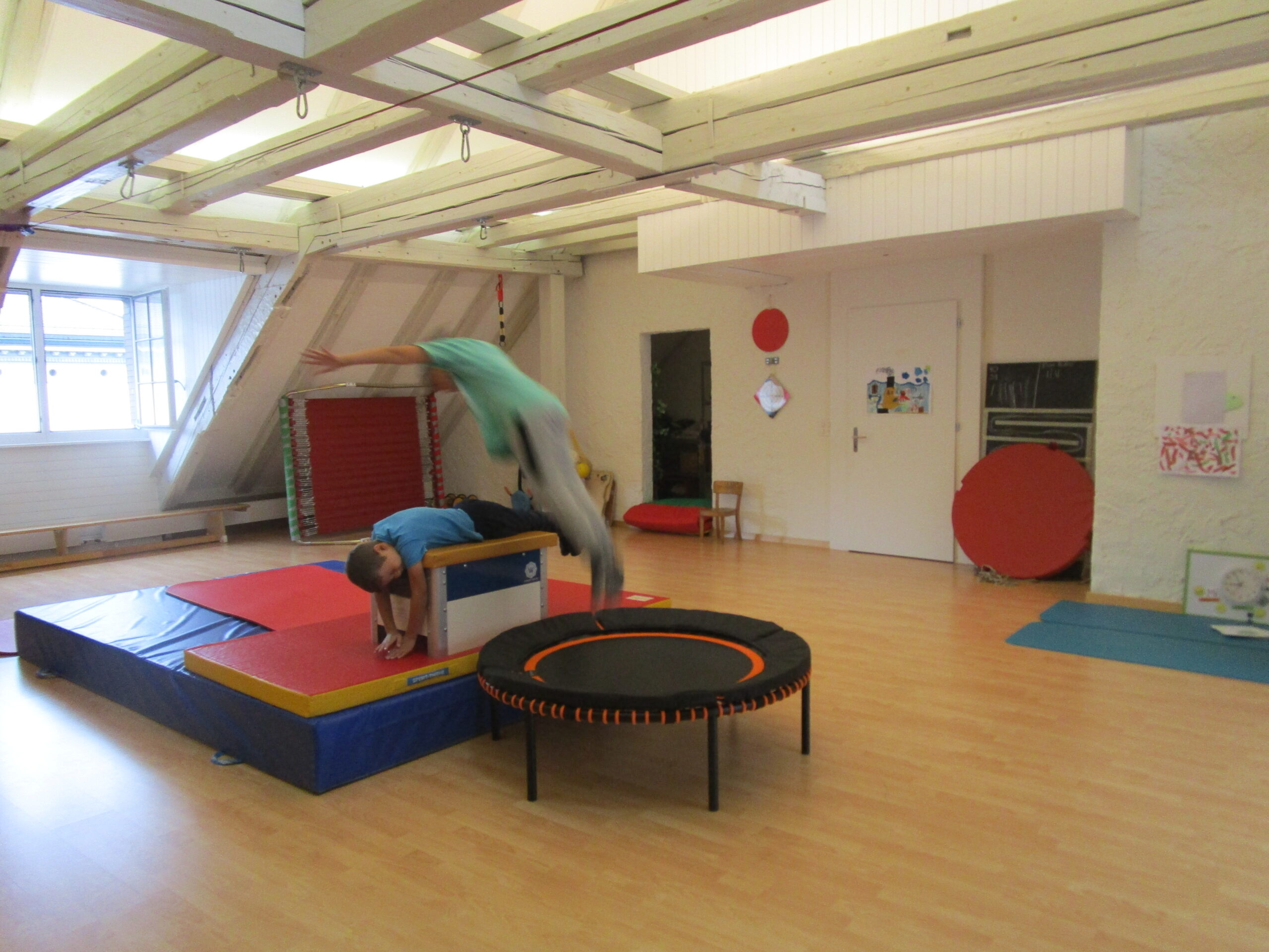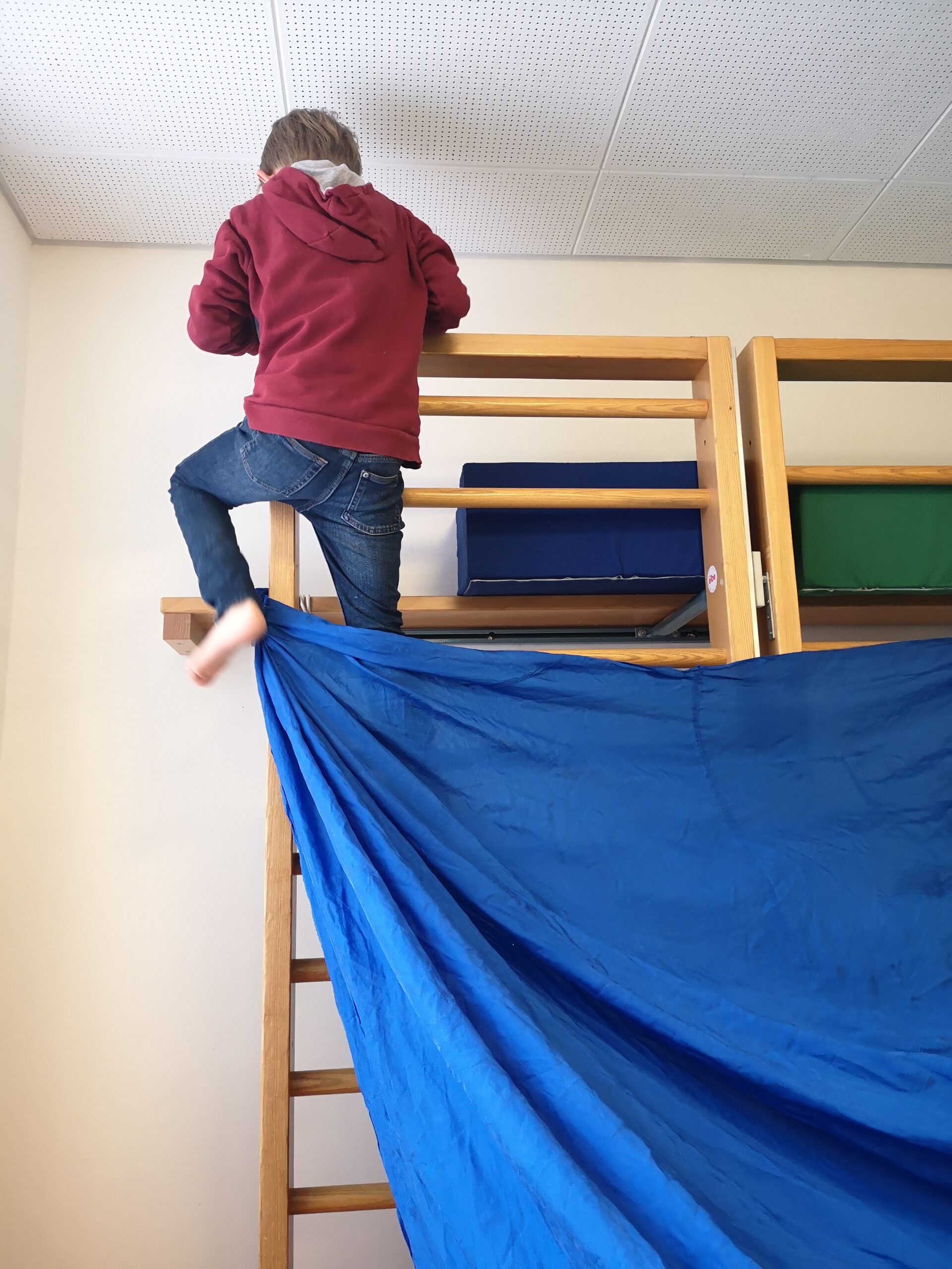 der Parcour als Übungsmöglichkeit für Balancieren, Klettern, Schwingen, Schaukeln, Rollen, Kriechen