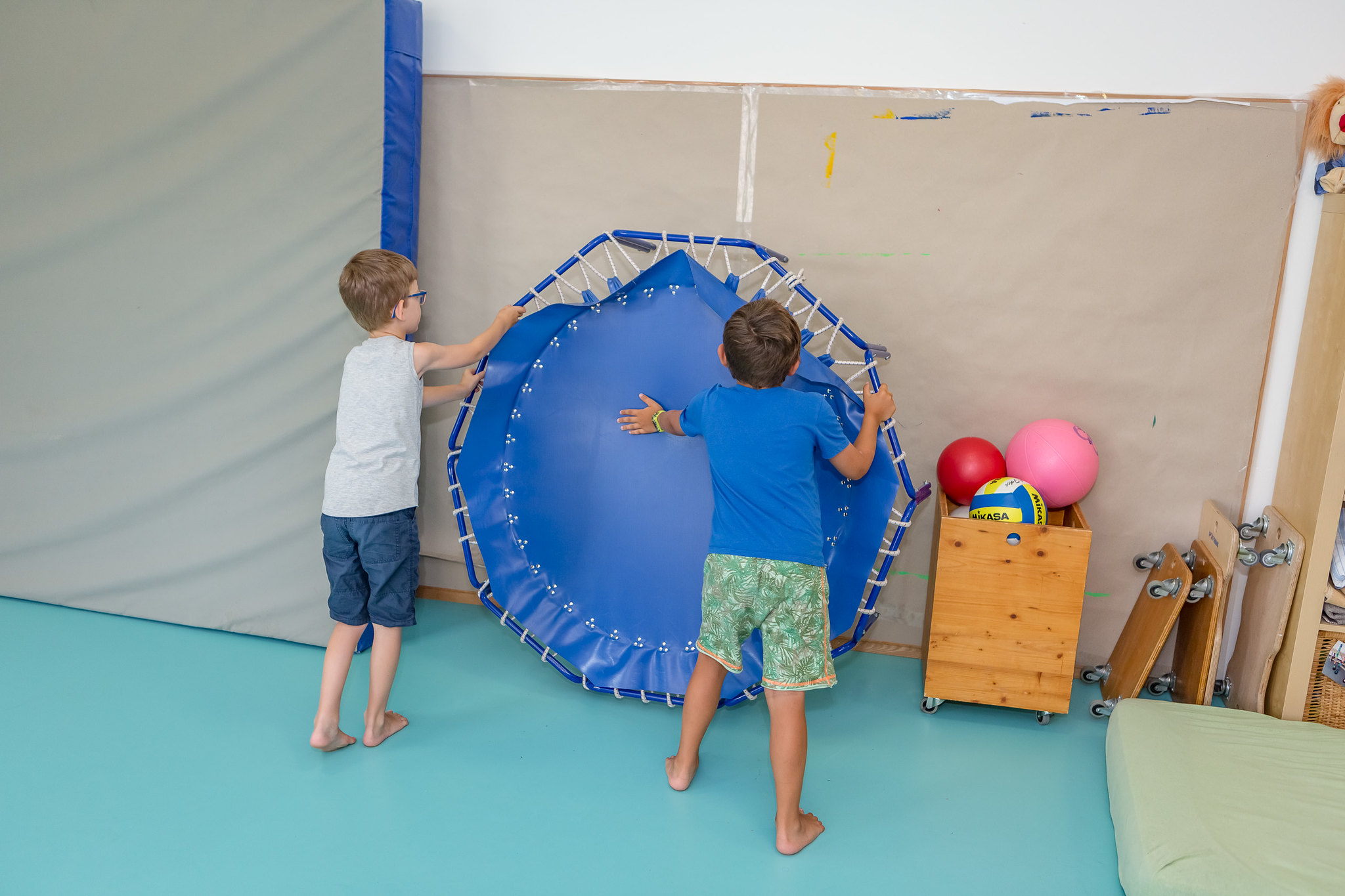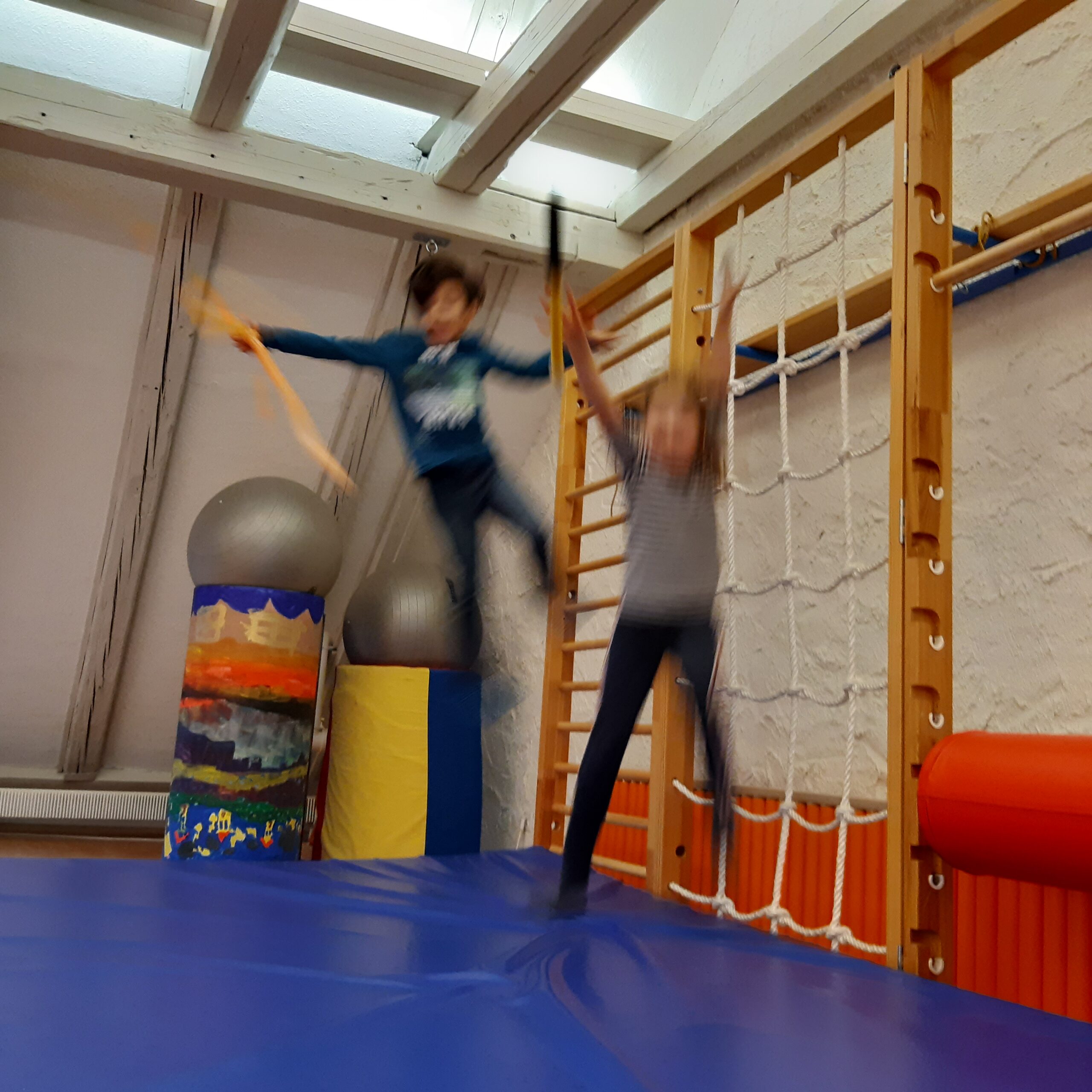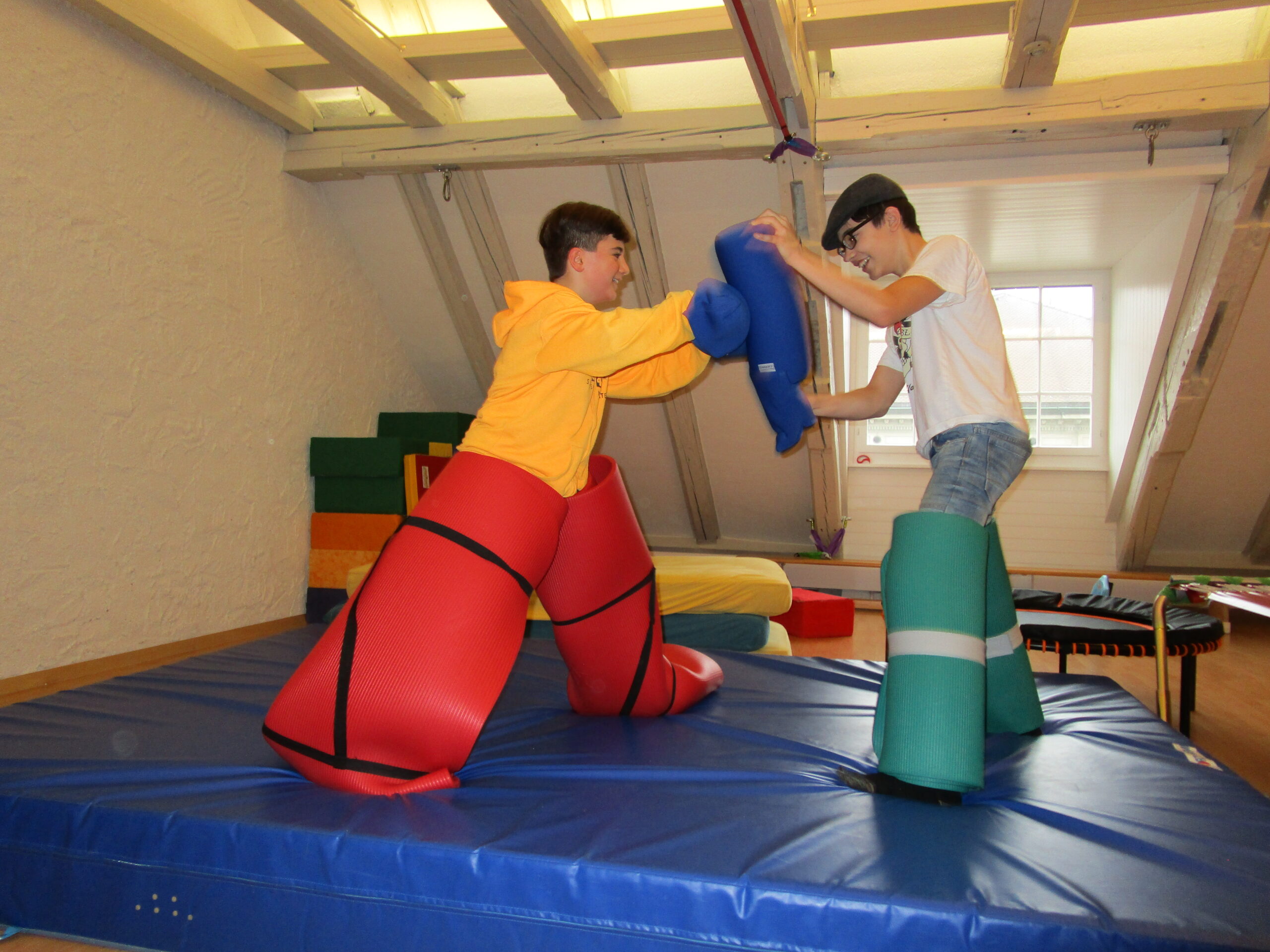 der Parcour als Übungsmöglichkeit für Balancieren, Klettern, Schwingen, Schaukeln, Rollen, Kriechen